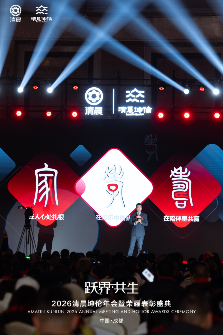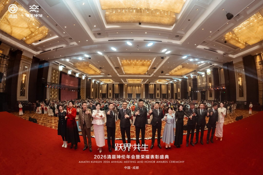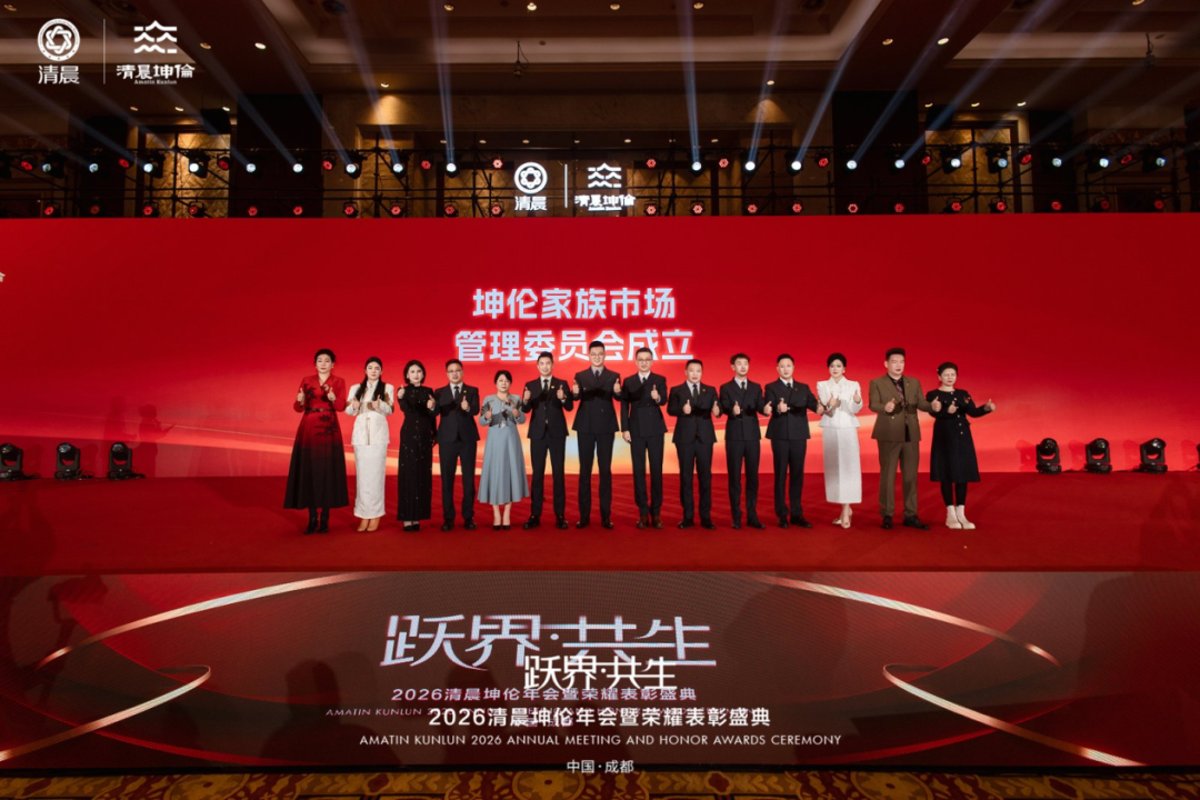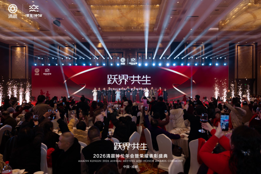 2026年,愿全体清晨坤伦家人以此次年会为起点,怀揣梦想、勇毅前行,以突破边界的勇气、同心共生的信念,深耕市场、深耕品质,共同书写清晨坤伦更加辉煌灿烂的新篇章!