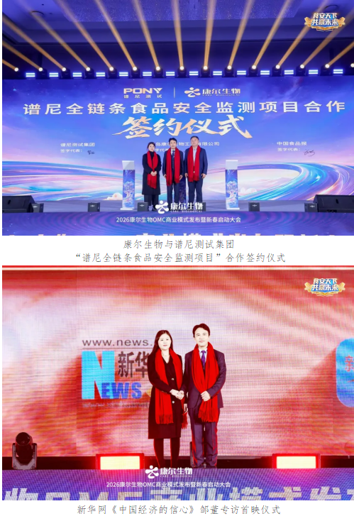 三场盛会汇聚政企学研各界精英与近万名康尔家人,共同见证康尔生物OMC商业模式的全新启航。大会亮点纷呈,从权威背书到科研突破,从模式创新到初心践行,全方位构筑起康尔生物“硬核”实力的四梁八柱,为“食安天下”的使命注入了坚实支撑。