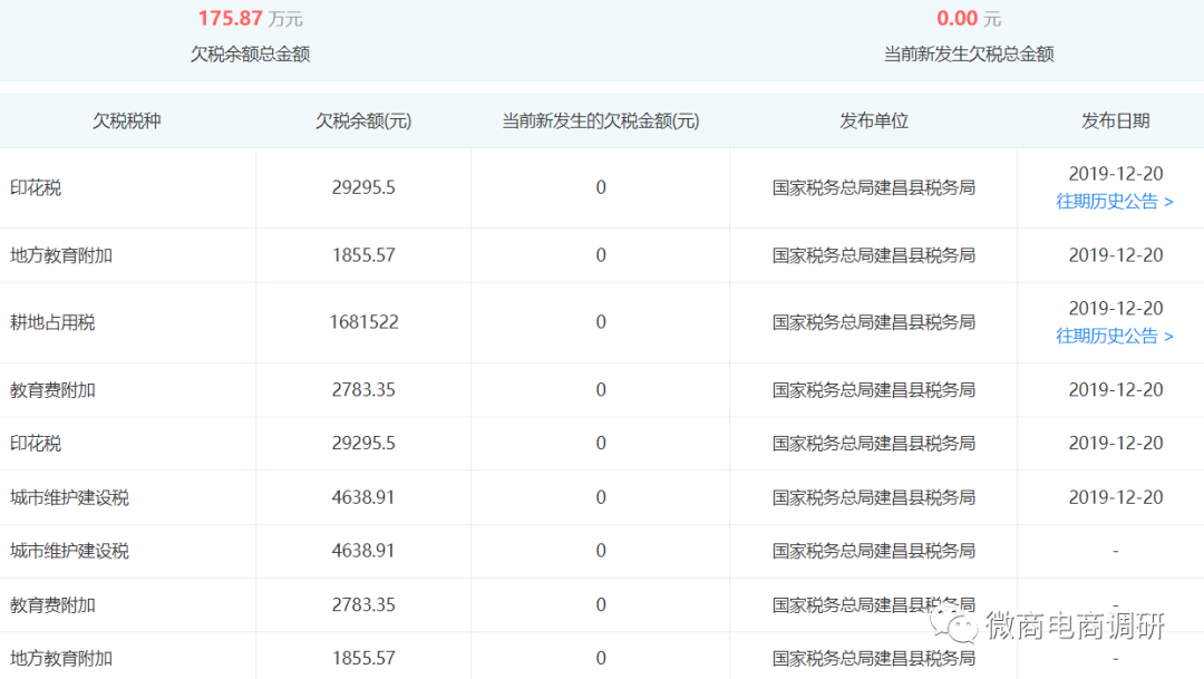 顺带一提,在不久前,大魏酒业公司还曾因为欠税问题遭到曝光,欠税余额总金额达到175万元以上。