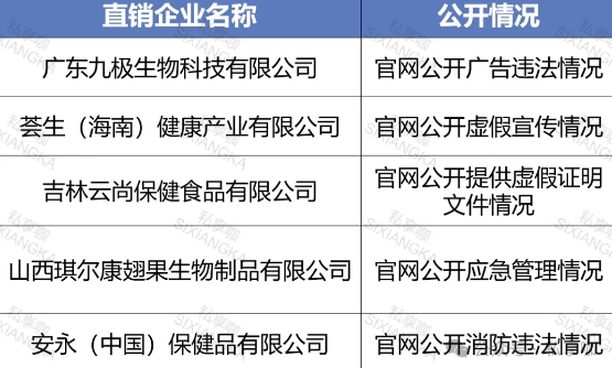 据国家企业信用信息公示系统、信用中国等网站的统计,94.1%的直销企业尚未公开行政处罚情况,仅有5家企业目前仍能查询到行政处罚情况。具体情况如下: