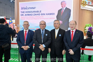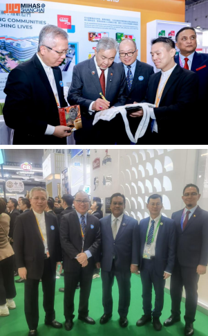在MIHAS展区开幕仪式上,马来西亚副首相拿督斯里阿末扎希(YAB Dato' Seri Dr. Ahmad Zahid Hamidi)亲临现场并主持剪彩。他强调,进博会是马来西亚企业拓展国际市场、深化与中国经贸合作的重要平台。马来西亚与中国的合作不仅限于贸易,更植根于互信、共同繁荣与深厚的人文纽带,这也是首次将马来西亚顶级清真展MIHAS带到上海的原因。他鼓励马来西亚企业借助这一机遇,进一步推动优质产品走向世界。随后,副首相特别参观了CNI长青集团的展位,与集团高层进行了亲切交流,并对CNI的产品研发与市场战略给予了高度评价。副首相的到访,不仅是对CNI的肯定,也为马来西亚企业在中国市场的发展注入了信心。