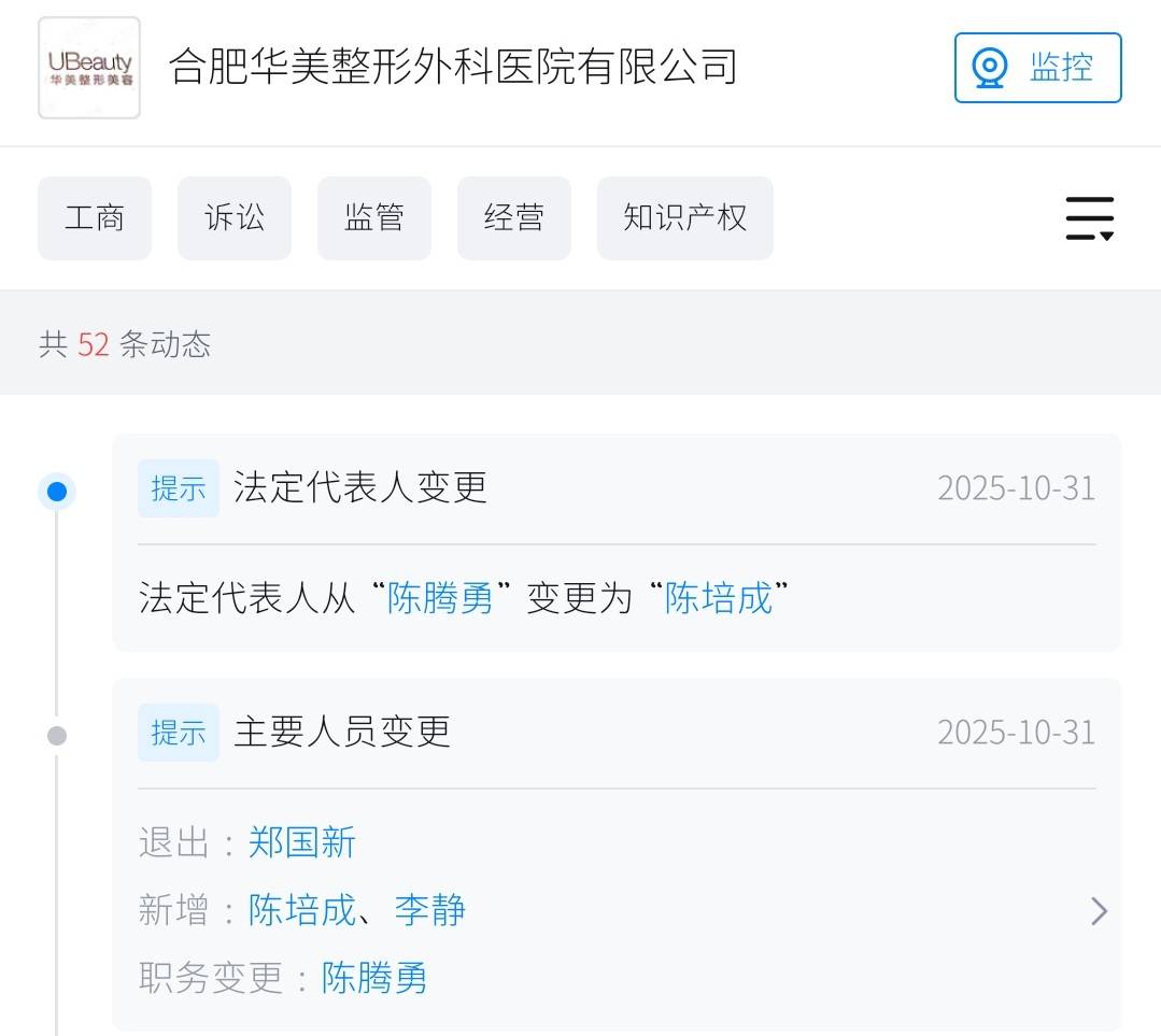 天眼查显示,合肥华美前法人陈某某,还曾投资一家莆田的公司,目前已经注销。而该机构在新闻曝光后,今年10月,该机构已经更换了法人,不过新的法人依旧是陈氏身份。