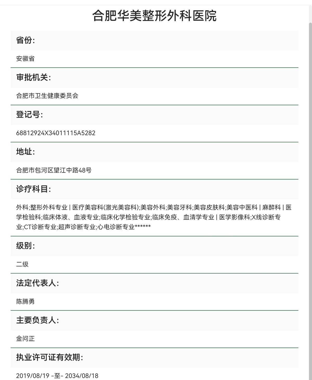 我国医美机构分为四个等级,其中一级可开展无创治疗,二级可实施微创手术,三级可做面部轮廓整形,四级仅限三甲医院开展颅颌面手术。而合肥华美作为民营机构,其经营范围被限定在二级及以下项目。