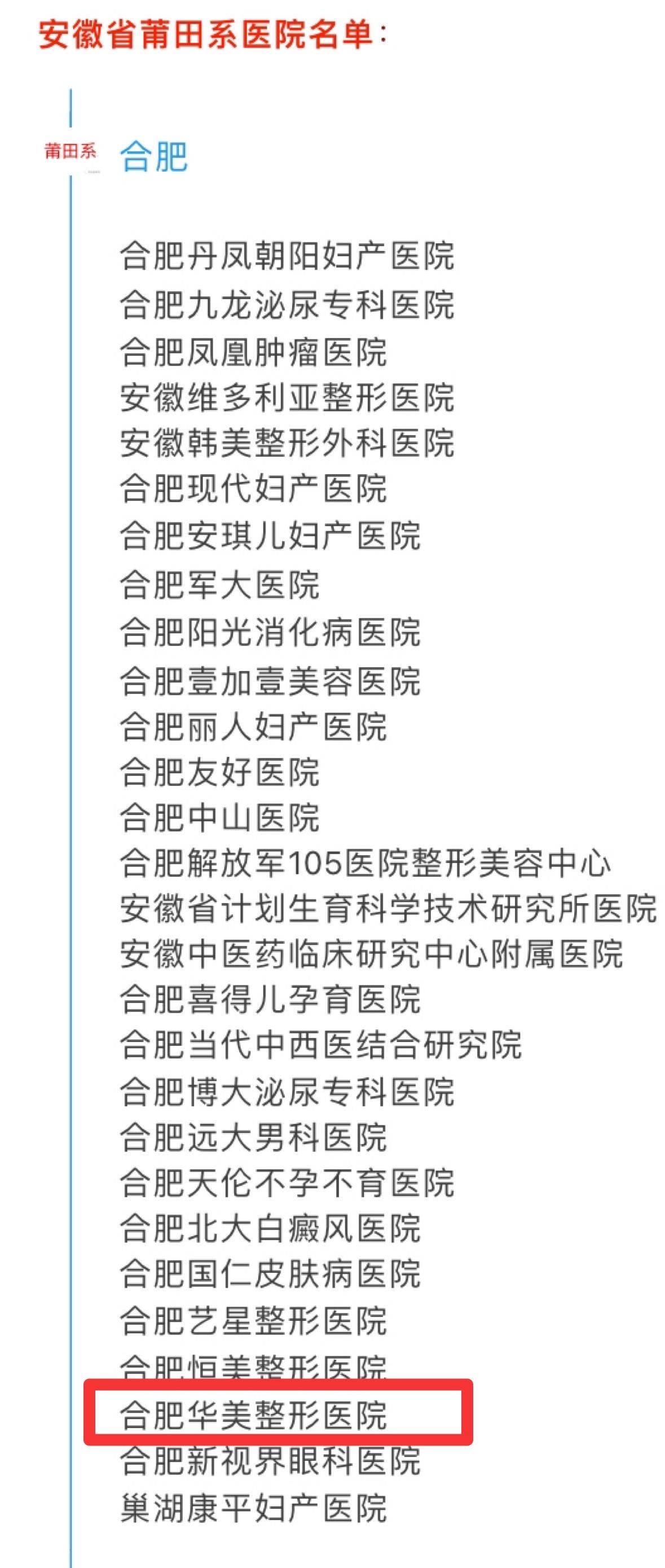 而皖美青年曾在2016年对安徽省莆田系医院进行了大摸底。并直接列出了合肥的莆系医院名单,其中,合肥华美赫然在列 成为了该机构是莆田系医美的最重要的直接指向性证据。