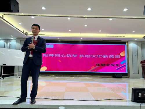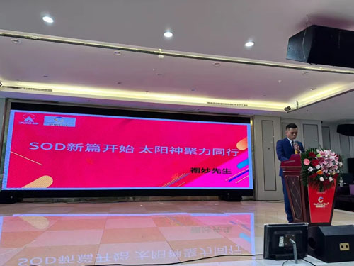 会议伊始,团队领导禤妙以《SOD新篇开始,太阳神聚力同行》为题,发表了热情洋溢的欢迎词。随后,会议进入核心环节,围绕SOD领域的发展前景与战略布局展开了深入分享,展现了公司在科技创新与市场拓展上的远见与实力。成功案例分享环节,分享嘉宾讲述了与太阳神携手共进的成长故事,真挚动人,增强了与会者对品牌的认同。会议还发布了多项专为合作伙伴设计的福利政策,现场反响热烈,合作意向不断。