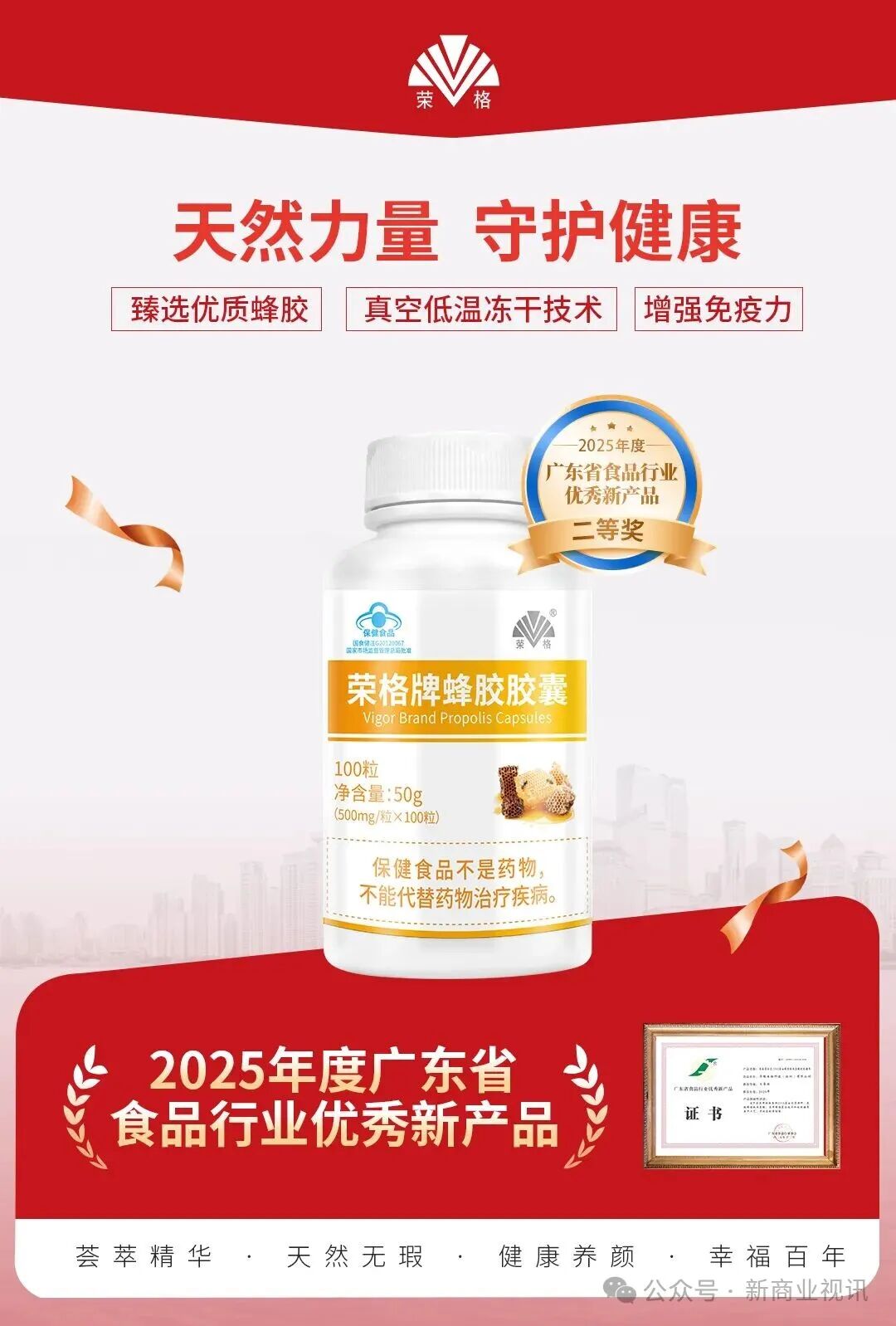 ✅荣格蜂胶胶囊(保健食品):甄选优质蜂胶,采用真空低温冻干技术,高效保留热敏性活性成分;结合微囊化包埋工艺,有效掩盖特殊气味,提升成分稳定性与服用体验。