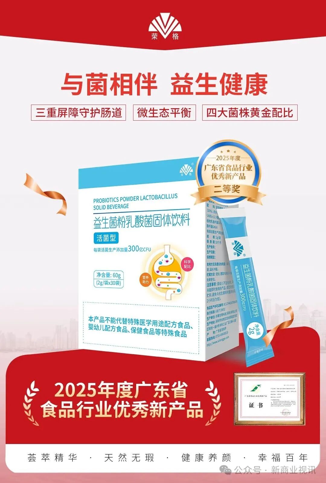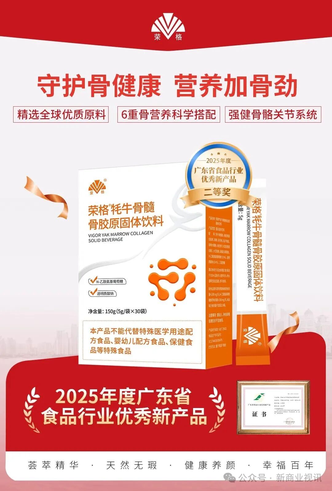 荣格6款健康产品凭借卓越的创新力、卓越的品质表现与广阔的市场前景,成功入选广东省食品行业协会“三品”专项行动项目,并被授予“2025年度广东省食品行业优秀新产品”称号!