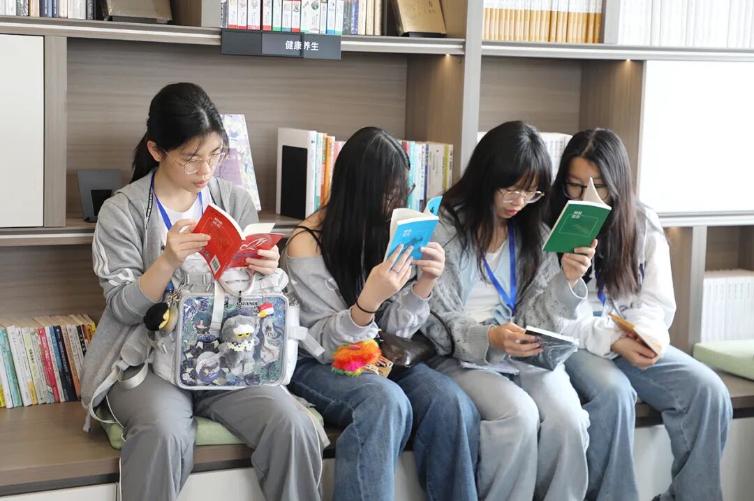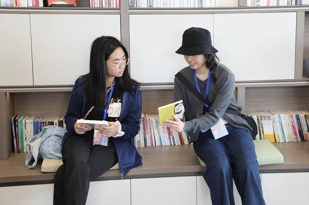 随后,交流团一行来到新设立于绿之韵中心的长沙市政协港澳委员工作室。该工作室经过精心规划,集履职办公、联络交流、协商议事等多重功能于一体,并着力打造为“书香政协”的标杆阵地,成为港澳委员扎根长沙、服务家乡的“专属家园”。步入工作室,迎面可见整齐陈列的政协读本、湖湘文化书籍及港澳相关刊物,书香气息扑面而来。同学们兴致勃勃地翻阅图书,有的三三两两围坐交流阅读心得,有的在读书角前驻足品读,现场氛围温馨而活跃。