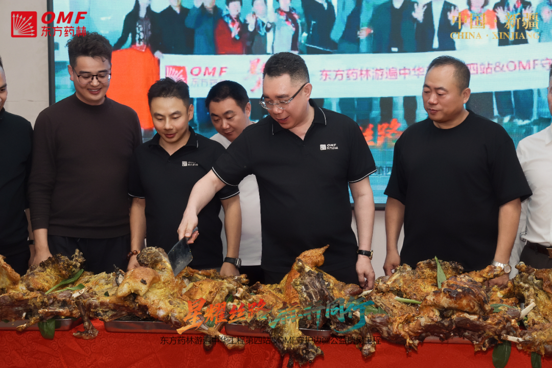 地道烤全羊焦香四溢,伙伴们围坐畅谈,分享白日植绿的热忱与丝路见闻,歌声与笑语在花海霞光间久久回荡。这不仅是一场味蕾盛宴,更是同心同行、为爱相聚的温暖时刻。