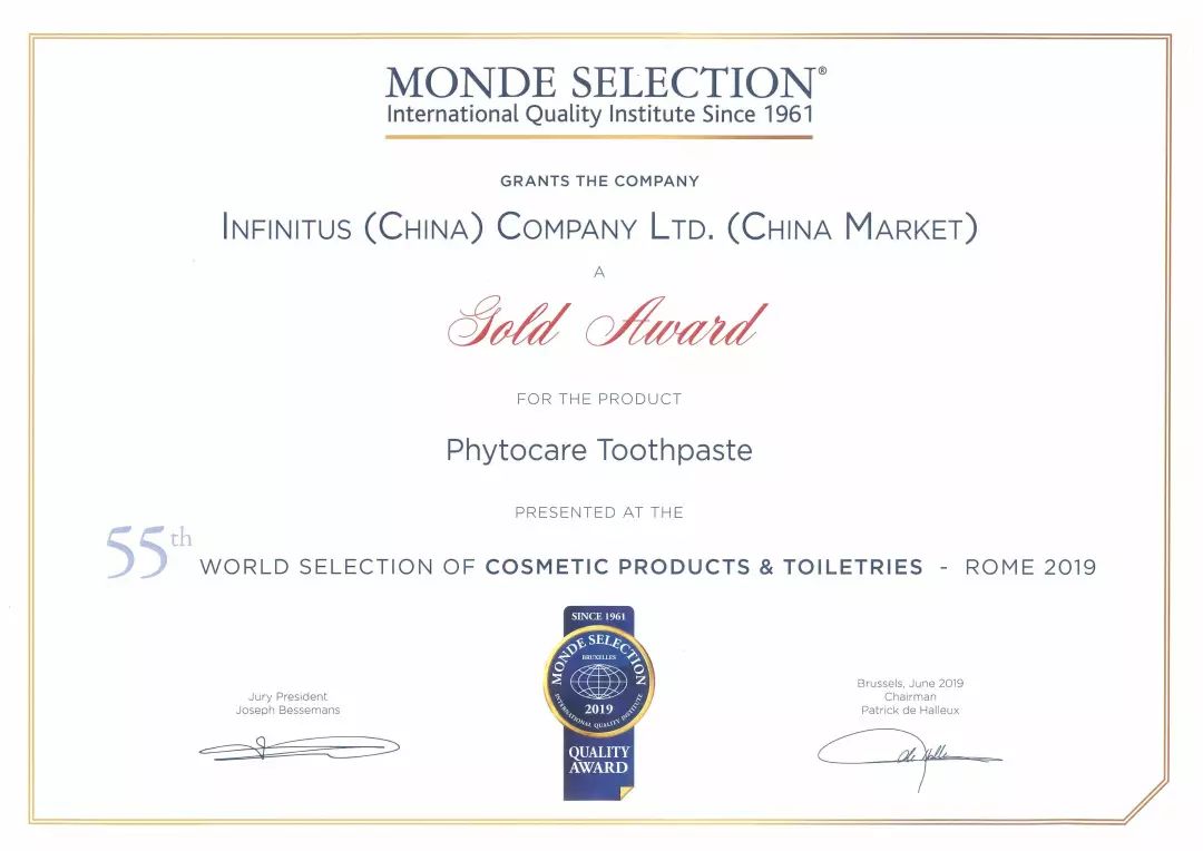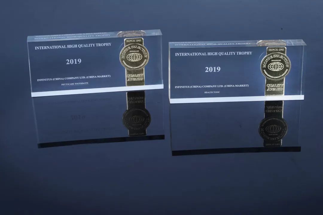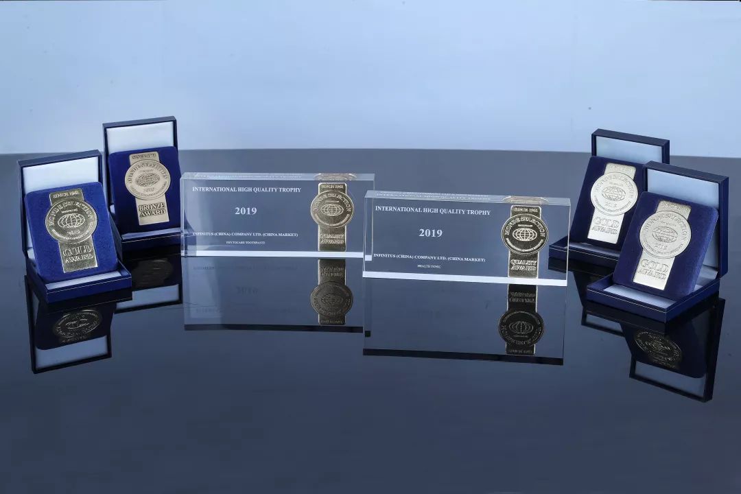 这已是无限极增健口服液和植雅牙膏第三次获得金奖,世界品质品鉴大会为这两款产品颁发了“国际高质量奖杯”。