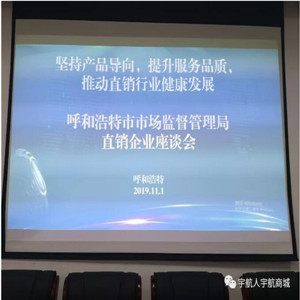 11月1日,内蒙古呼和浩特市市场监督管理局召开了主题为“坚持产品导向,提升服务品质,推动直销行业健康发展”工作座谈会。呼和浩特市市场监督管理局上官应旭副局长,呼和浩特市市场监管总局、各区市场监管局的各位领导人及20余家直销企业代表参加了本次会议。