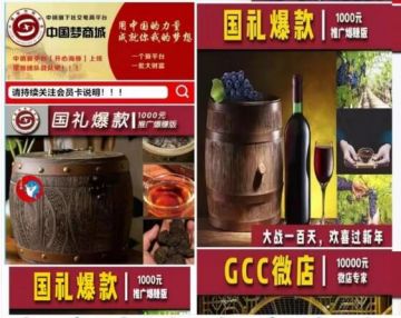 另外,鹰鉴还发现,该社交电商平台上没有什么商品,只有所谓的大礼包。大礼包分别是标价5000元的量子手机、10000元的“月光宝盒”和GCC微店,以及1000元的红酒。