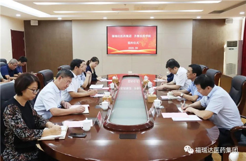 齐鲁医药学院院长韩冰、副院长耿磊,明仁福瑞达总经理贾美春,福瑞达医药集团、齐鲁医药学院相关部门负责人参加会议。