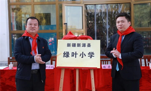绿叶科技集团高级经理邵正志代表绿叶购捐赠援建资金并表示,绿叶作为一家科技型企业,注重人才培养的同时也持续关注祖国教育事业的发展,希望通过此次捐助,能为改善阿勒玛勒镇绿叶小学教学环境尽绵薄之力。他勉励在场的小学生们秉持新源县赋予大家的善良、热情和勤奋等优秀品质,努力拼搏、奋发进取,积极回报母校的培养和全社会的关爱。