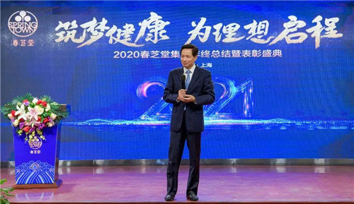 22年来深耕大健康、产业报国是春芝堂的使命担当。春芝堂集团董事长王爱兴发表了热情洋溢的讲话,他指出,2021年是春芝堂人的成长年、效率年。公司将打造标准化,规范化、流程化、机械化、自动化的团队、有职业素养的团队,为积极落实“健康中国2030战略”提供有力的人员保障。言商仍向儒,董事长强调,作为专注弘扬中华传统中医药养生智慧20多年的民族健康企业,融儒入商的慧根善念,始终贯穿春芝堂的发展历程。2021年将迎来中国共产党百年华诞,深切希望每一位春芝堂人能继续秉持扬善、立善、行善,从善如流的精神传承,爱祖国、爱公司、爱产品、爱系统,传递正能量,弘扬“红船精神”,打牢文化信念根基,在践行健康中国行动中,内外兼修,知行合一,做善行良德的倡导者、践行者、传递者。春芝堂人将继续发扬“俯首甘为孺子牛”精神,真干苦干加实干,全力以赴守护国人健康,共同打造“共生互生再生”幸福共同体,助力健康中国梦。