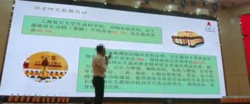 除了“患者”现身说法,曹某还通过数据介绍“长生露”的效果。舞台大屏幕上的某个宣传页面,左上角显示“科学研究数据论证”字样,右上角则是“宇航人”的品牌标志。页面中心部分显示的是来自“上海复旦大学生命科学院”和“湖南湘雅医院”的实验“结果”——“长生露能延长动物(果蝇)平均寿命63.1%”“长生露对十多种老年性疾病的总疗效率达78%,对慢性疾病总有效率达89.1%”。